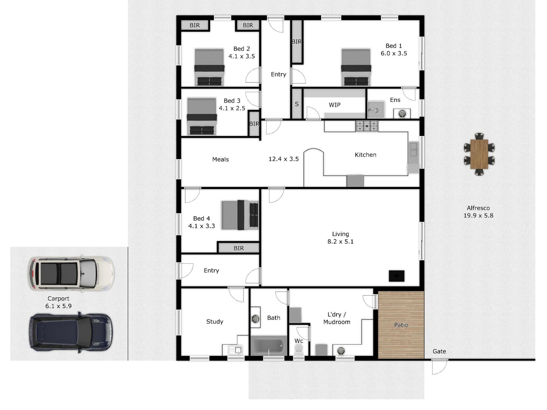 Additional features include security-grade screens, a hard-wired alarm system and nine video surveillance cameras with monitor, providing peace of mind. A large office with fixed computer bench, split system and sink further enhances the home's functionality. Spanning the full length of the home is an impressive 19.9m x 5.8m alfresco, ideal for year-round entertaining, alongside a two-car carport.